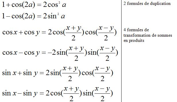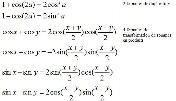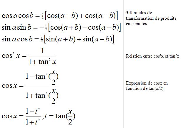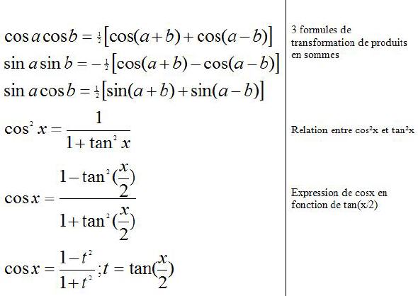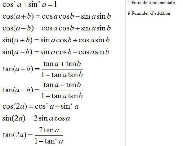 FORMULES TRIGONOMETRIQUES